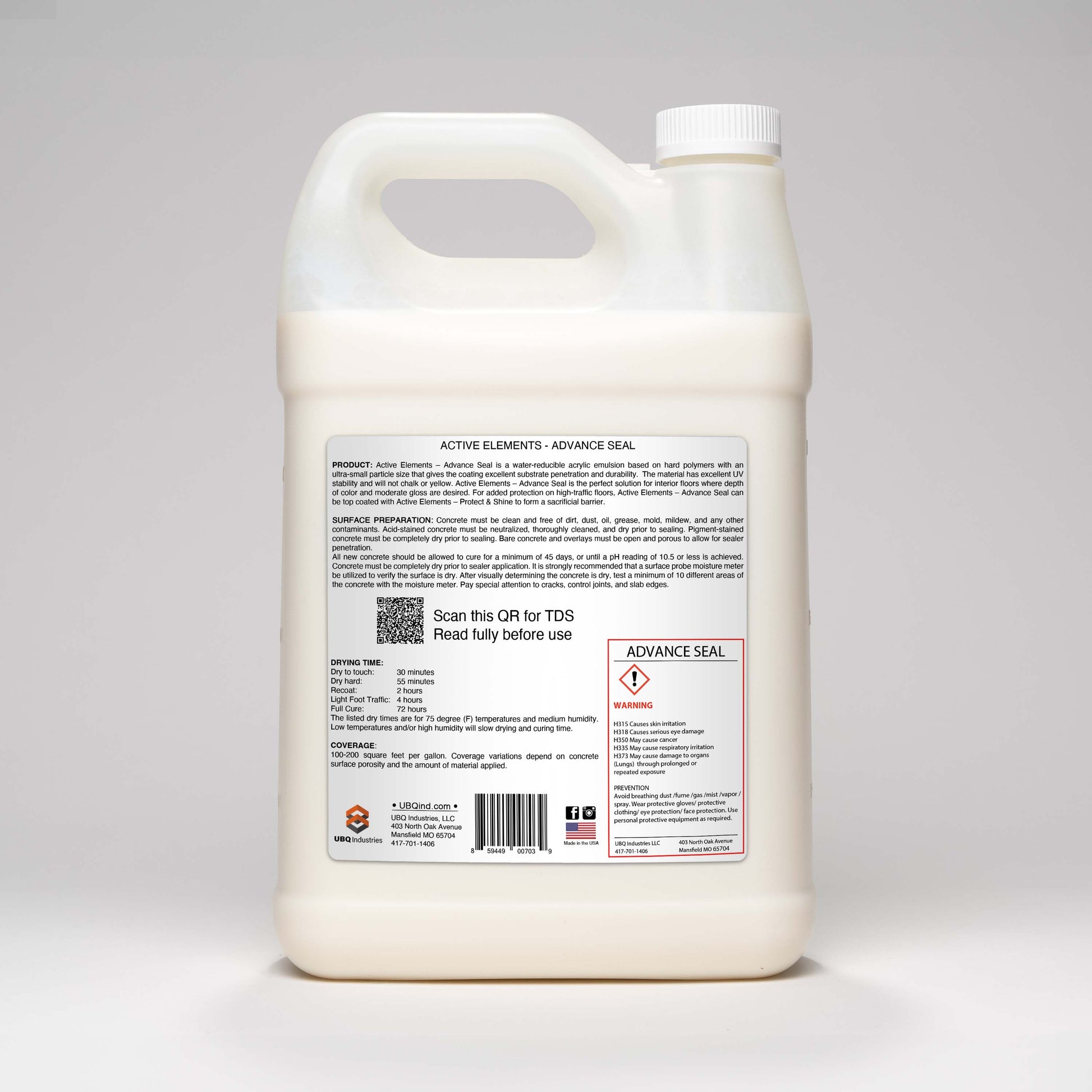 Stir well before use. Pour Active Elements – Advance Seal through a strainer prior to use. Apply by using a high-quality 3/8” nap lint-free roller cover, or 1/4” nap mohair roller cover (for smooth surfaces). Dip directly into a roller pan and distribute the material by rolling laterally and then up and down (crosshatch rolling). Roll the material into a wet edge and avoid excessive back rolling. When applying 2 coats of sealer roll the second coat perpendicular to the first. Keep containers closed when not in use, unattended open material will form a skin on the surface.